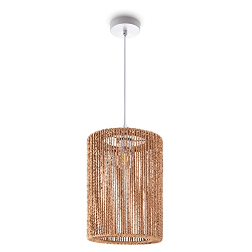 Paco Home Lampe Suspendue Papier Boho E27 Rotin Nature Blanc