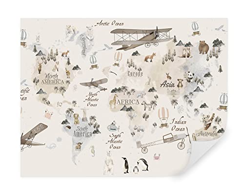 Papier peint 3D effet carte monde animaux voyage enfants pay...