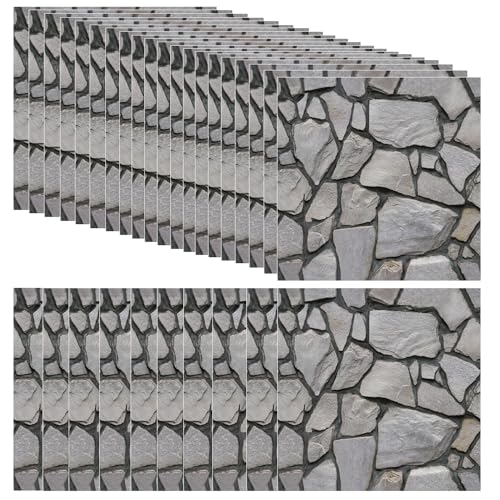 30 Pièces Papier Peint 3D Brique Adhesive Mural, Dalle PVC A...