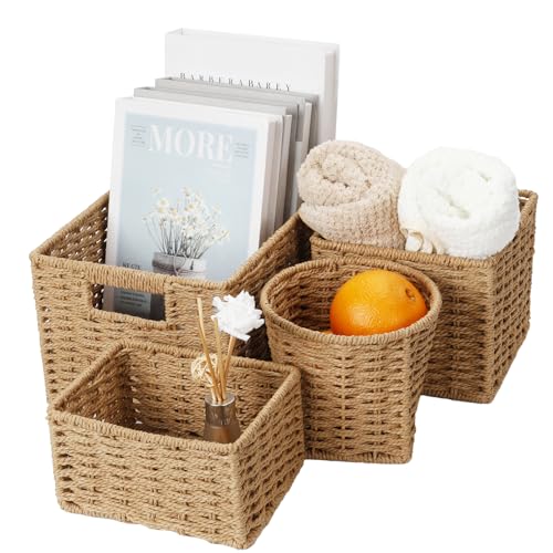 Panier Rangement Tissé en Corde Papier Lot de 4 Empilables