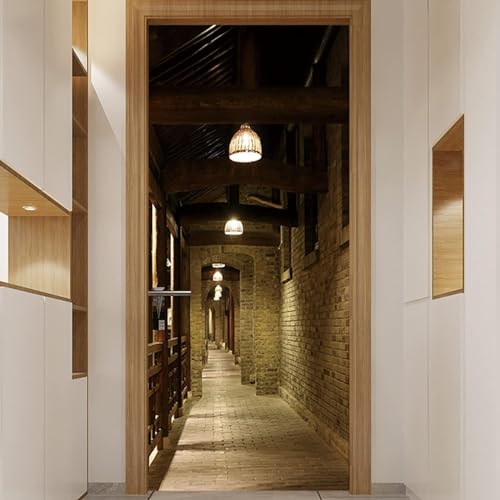 Sticker couloir papier peint trompe l'oeil porte 85x200 cm