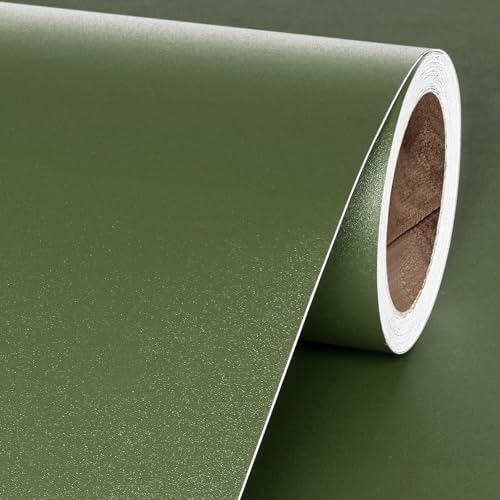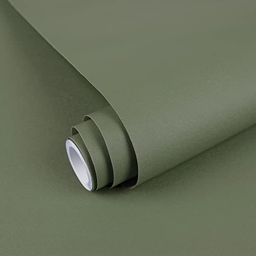 Livelynine Papier Adhesif pour Meuble Vert Olive Papier Pein...