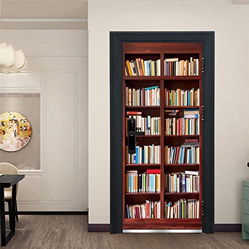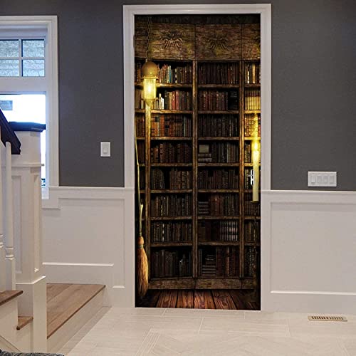 XAONUO 3D Autocollant De Porte Trompe L''Oeil Rétro Biblioth...
