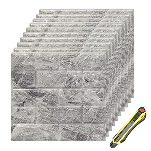 Hyesrtey 10 Pièces Papier Peint Brique 3D Panneau Mural Adhé...