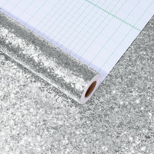 Papier peint épais argenté à paillettes, 40x200 cm