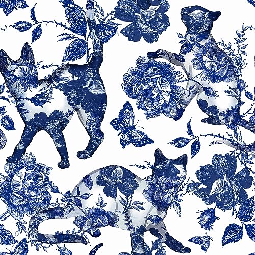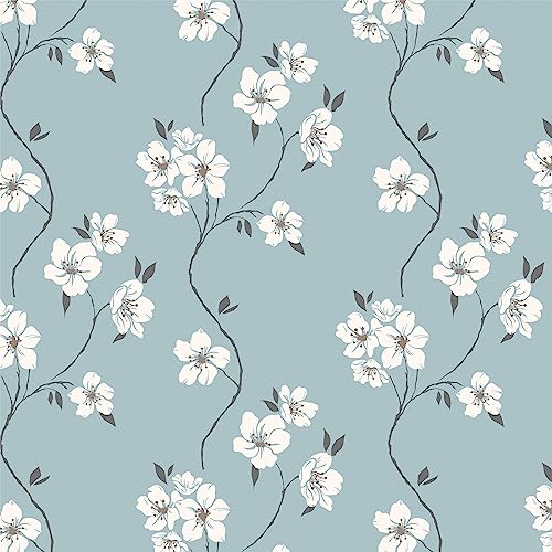 Timeet Papier peint autocollant bleu - Motif fleurs - Blanc...