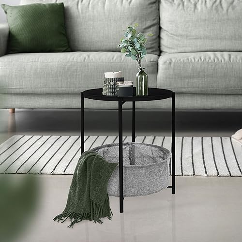ML Design Table Rond Ø 43 cm x H 51 cm Noir Métal Panier Ran...