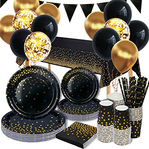 Vaisselle Anniversaire Noir et Or, 25 Invités Vaisselle Assi...