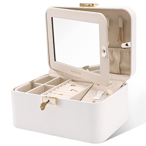 KAMIER Boîte à bijoux pour femme, grande boîte de rangement...