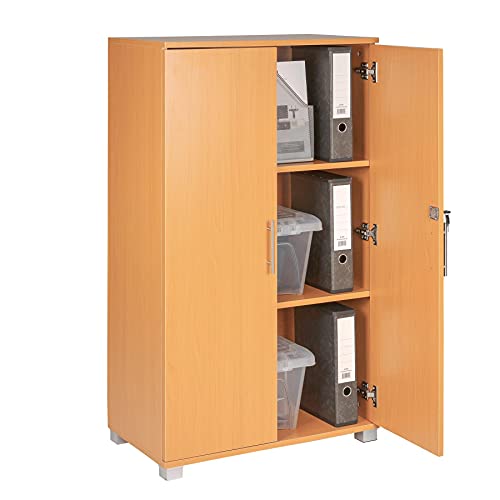 Armoire de rangement haute bois hêtre verrouillable 2 portes