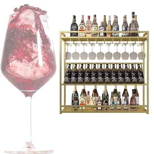 Casier Vin Mural Flottant Métal, Étagères Multifonction Bar...