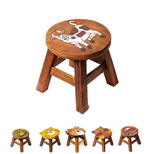 Agous Tabouret Enfant Bois Massif Peint Sculpté Hauteur 25 c...