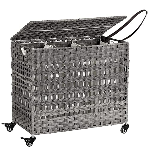 SONGMICS Panier Linge Tissé, 3 Compartiments, Mobile