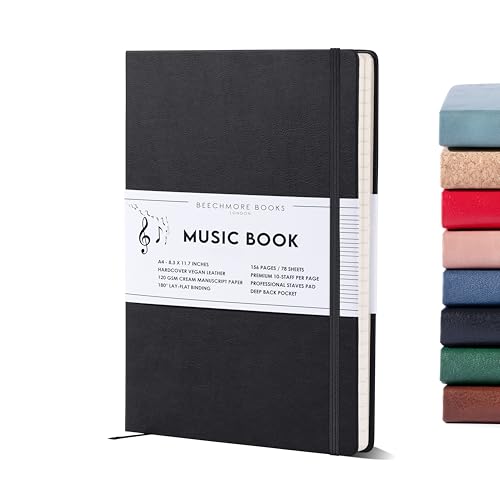 Cahier de Portées Beechmore - A4 Noir Cuir 10 Portées