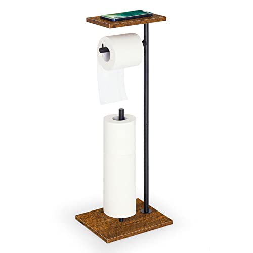 Support de Papier Toilette sur Pied avec étagère en Bois Rus...