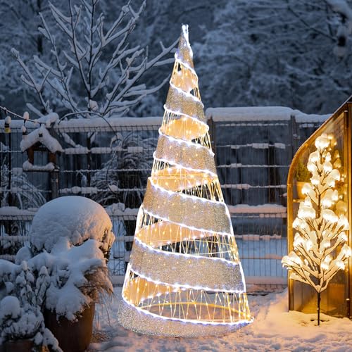 COSTWAY Conique Artificiel 155cm - Décoration de Noël LED