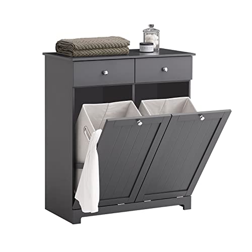 Meuble de rangement avec 2 tiroirs et 2 paniers à linge. Pra...