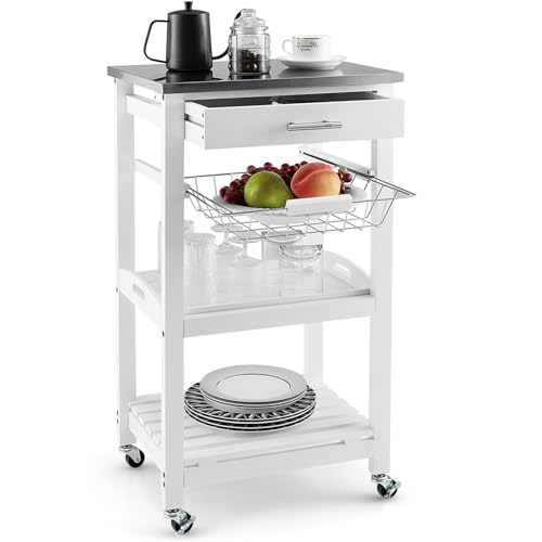 COSTWAY Desserte de Cuisine sur Roues Comptoir en Acier Inox...