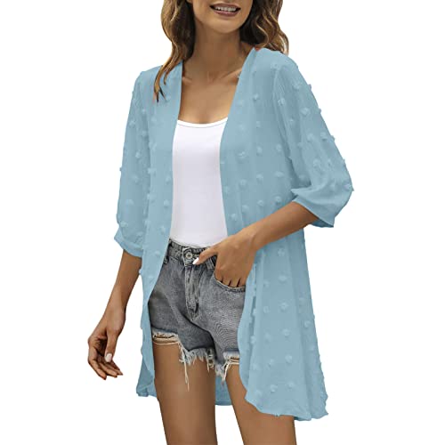 Transparente Femme Cardigan Décontracté à Manches Trois Quar...