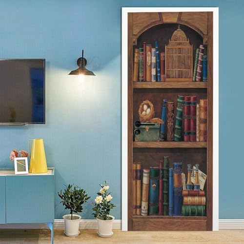 Porte Autocollant Papier Peint 3D Étagère Livres Bibliothèqu...