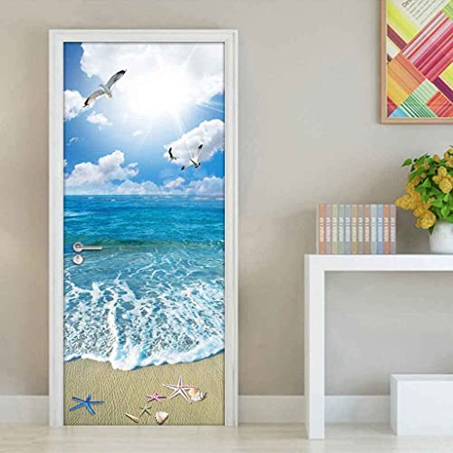 Sticker Porte Effet 3D Plage Soleil Paysage Marin 95 X 215 C...