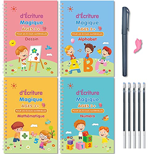 ?【Jeu de cahiers magiques 4 en 1】?Comprend 4 Cahier de pra...