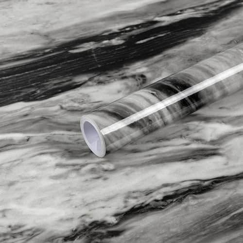 Adhésif Papier Meuble Marbre Gris et Noir, Papier Peint Adhé...