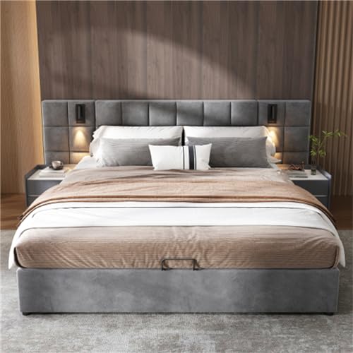 Lit Rembourré avec Rangement Hydraulique, Lampe Directionnel...