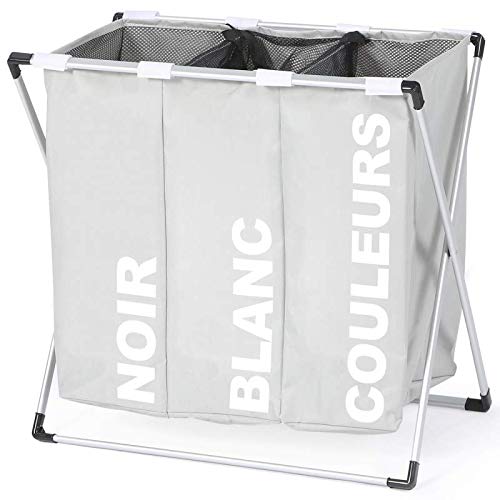 Craquez pour le panier à linge 3 compartiments en tissu gris...
