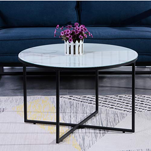 Table GOLDFAN Ronde Basse Blanc Canapé Verre Marbre Salon Mo...