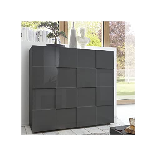 Vaisselier contemporain 2 portes finition laquée gris brilla...