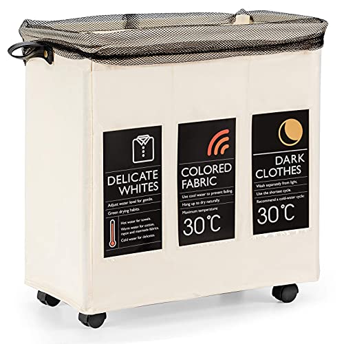 Panier à linge sale à 3 sections, grande capacité 120L, à ro...