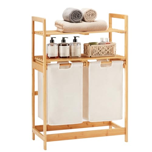 Panier à linge bambou avec étagères et sacs extensibles