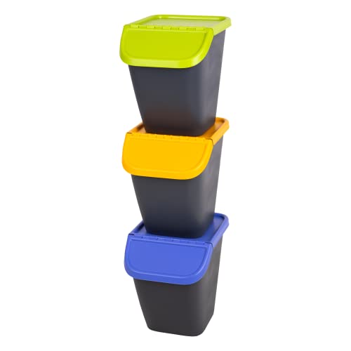 Pelican Lot 3 poubelles tri sélectives empilables plastique...