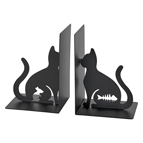 Baroni Métal Lot de 2 Serre-Livres, Noir, 12x10x17 cm