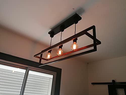 Très belle suspension luminaire Mimosa en bois noir et marro...