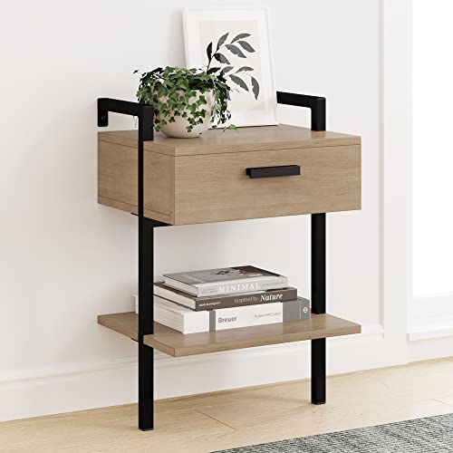 Rustique à 2 étages avec tiroir, étagère, table de chevet et...