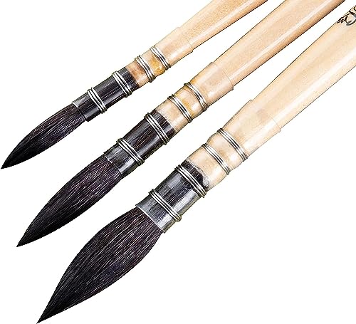COOZEE Lot de 3 pinceaux d'artiste naturels écureuil