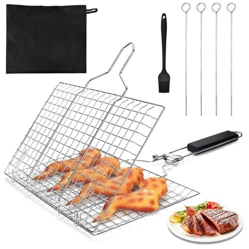 Barbecue à poisson en acier inoxydable pliable - 5 Skewers -...