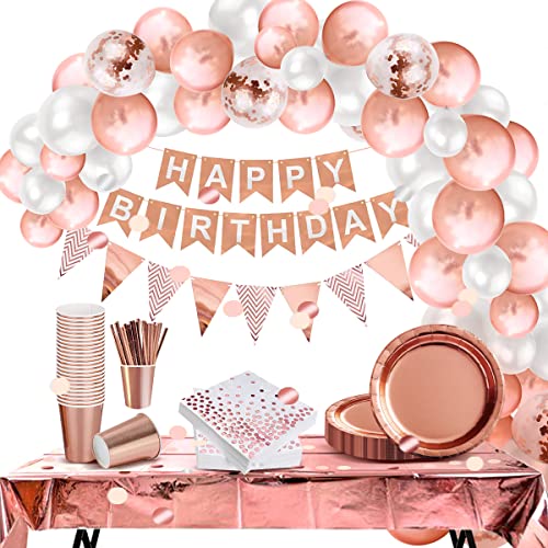 iZoeL Vaisselle Jetable Anniversaire Rose Gold, Decoration A...