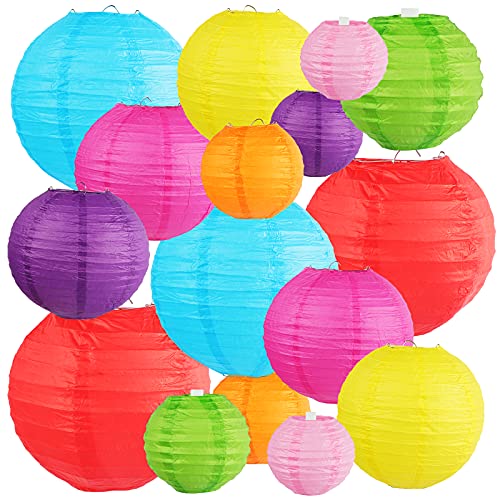 Lot de 16 lanternes Rondes Chinoises en Papier colorées à Su...
