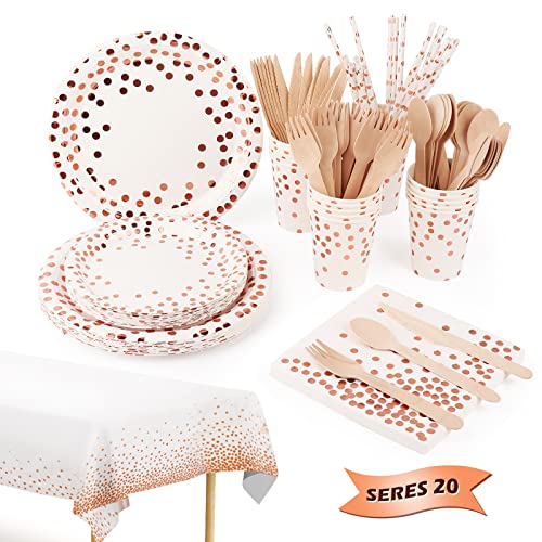 Vaisselle anniversaire de fête à pois or rose: 161 pièces de...