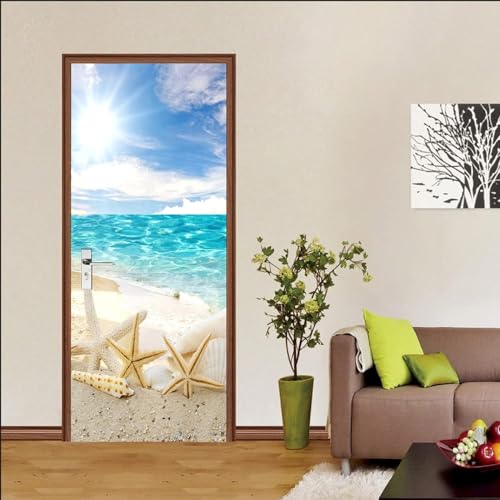 3D Stickers Paysage Mer Étoiles Solaire Porte Murale Autocol...