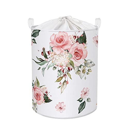 Panneau Rangement Linge Rose Fleur, Corbeille Pliable Blanc