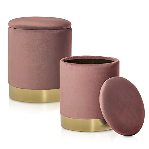 Tabouret rond velours Elyflair avec espace de rangement et c...