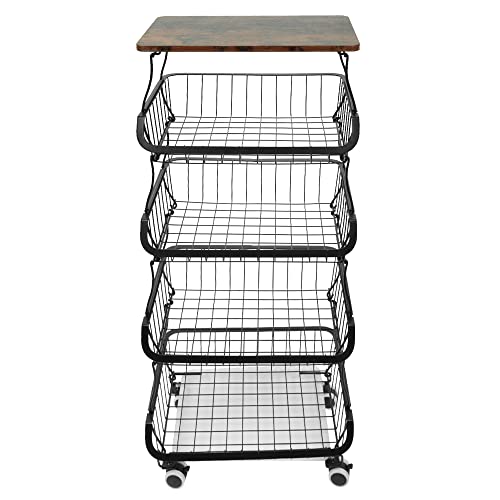 Panier Fruits Légumes Roues, Support Panier Roulant Empilabl...