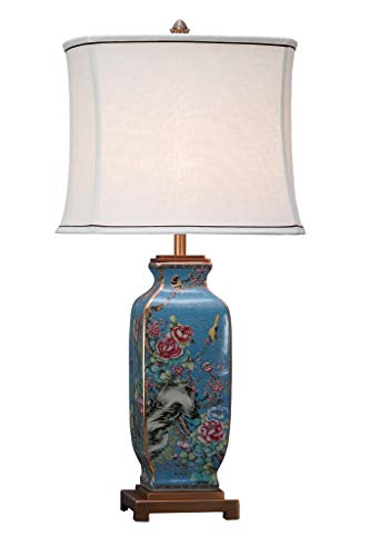 Fine Lampe Asiatique Peinte Porcelaine Céramique L26xP26xH74...