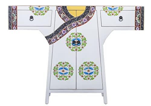 Fine Armoire Chinoise Kimono Peinte Blanc L120xP35xH87cm