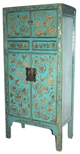 Fine Armoire Chinoise Sarcelle Peinte Haute Qualité