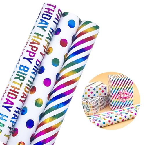 3 rouleaux de papier cadeau coloré pour emballer toutes sort...
